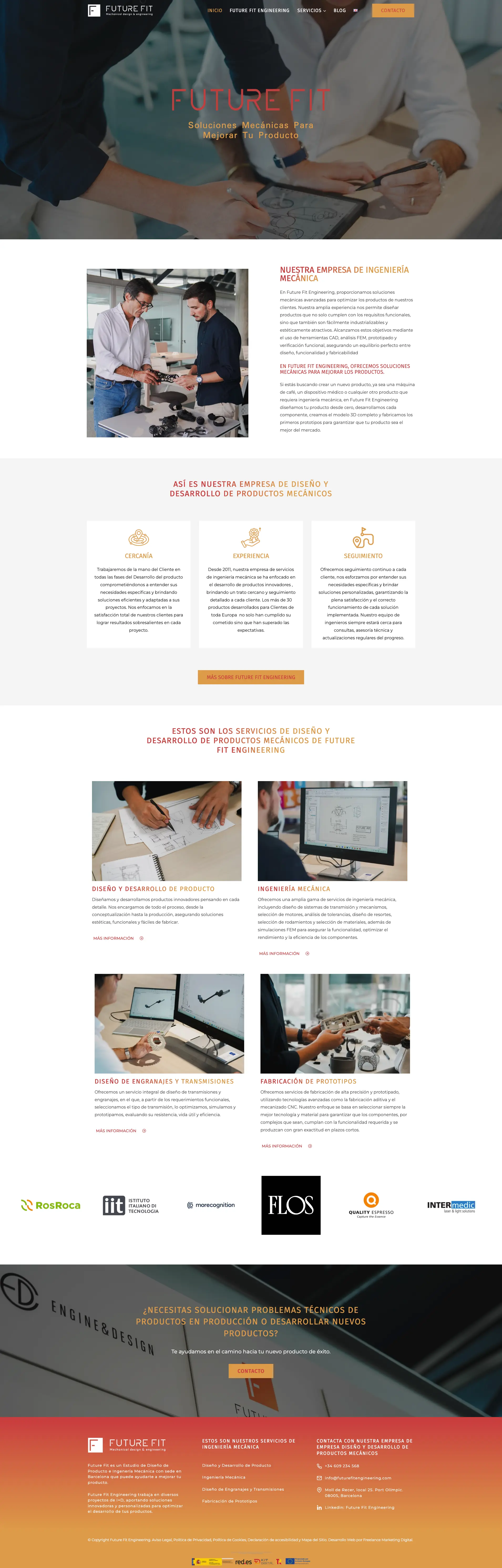 Colaborar con Future Fit Engineering ha sido un reto emocionante y gratificante. Esta empresa, que se dedica a ofrecer soluciones de ingeniería mecánica, necesitaba una página web que estuviera a la altura de su visión innovadora y además posicionara bien en buscadores. Desde el inicio, el objetivo fue construir una web funcional y atractiva que transmitiera profesionalismo y confianza, mientras se optimizaba su posicionamiento en buscadores (SEO) para atraer a clientes potenciales.