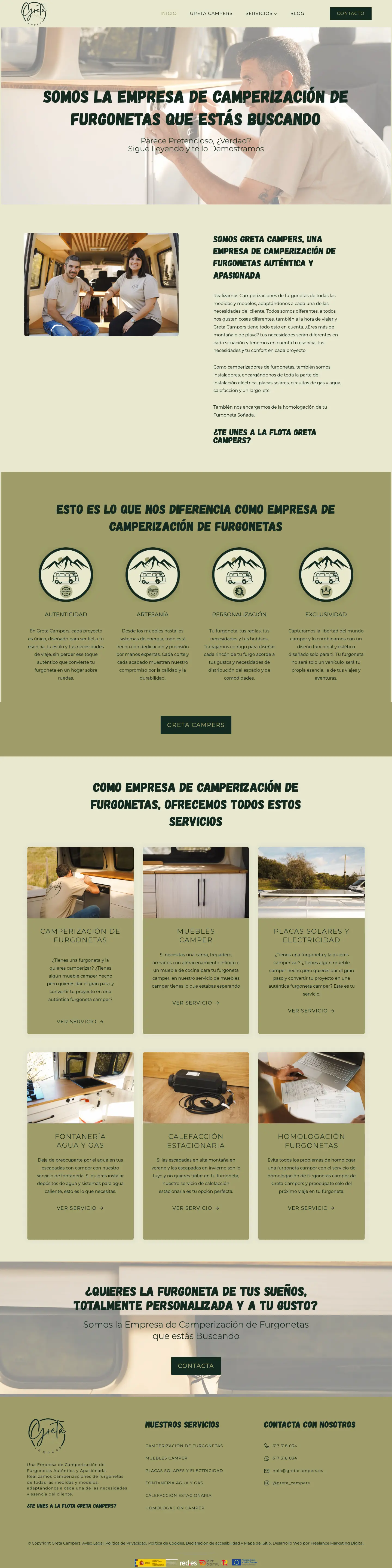 Greta Campers cuenta con una web que no solo representa su esencia, sino que también funciona como una herramienta clave para captar nuevos clientes y fidelizar a los existentes. Gracias a la estrategia SEO, la marca ha mejorado su posicionamiento tanto a nivel nacional como local, conectando con personas que buscan hacer realidad su sueño de tener una furgoneta camperizada a medida.